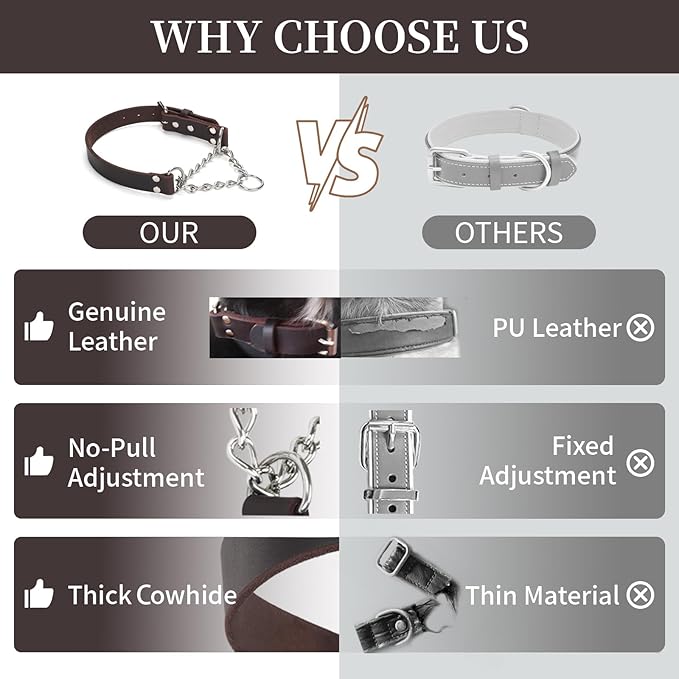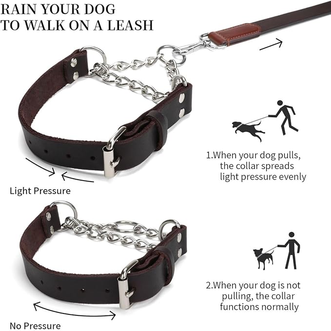 - 【Premium Quality Leather】Made from 100% genuine leather and features a stainless-steel chain, our dog collars provides unmatched durability and comfort.