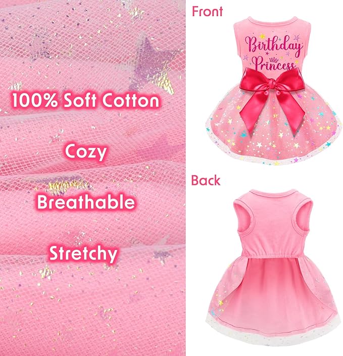 - Breathable & Stretchy Fabric: The birthday dog outfit is made of breathable, soft, skin-friendly cotton and spandex, it keeps your girls feeling comfortable all day long. The dog clothes for small dogs is lightweight and stretchy, durable to wear