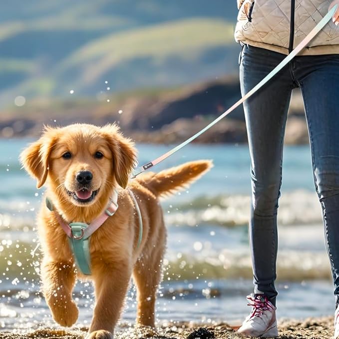 - Comfortable Padded Handle: The gradient dog leash is equipped with padding, offering extra comfort and grip for your hands during long walks or training sessions. This design reduces hand fatigue. Additionally, the metal D-ring allows you to attach waste bags, helping you maintain responsible walking habits