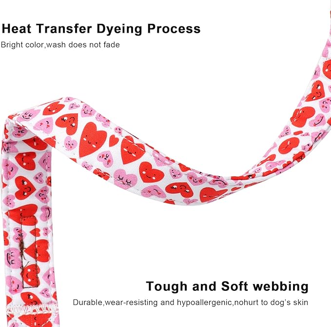 Lionet Paws Valentine's Dog Collar- Cute Pink Wink Heart Dog Collars with Plastic Buckle, Light Adjustable Dog Collars for Medium Large Dogs