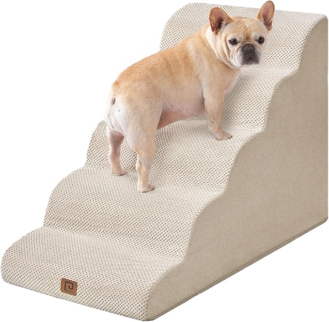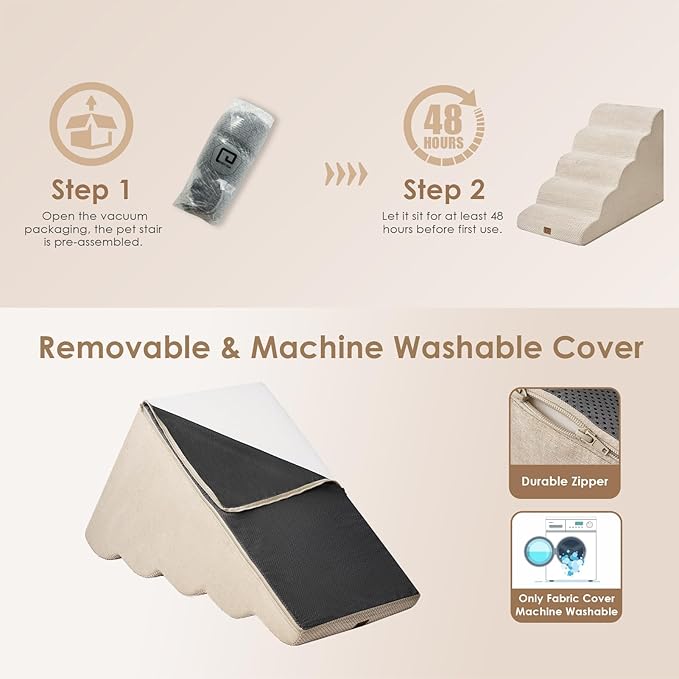 - SPECIFIC AND STEADY DESIGN - 33D density of pure foam make this stair more steady when your pets walk on. The dog bed stairs can provide strong support for pets in the walking process. Low angle slope design can better protect your pet's joints.