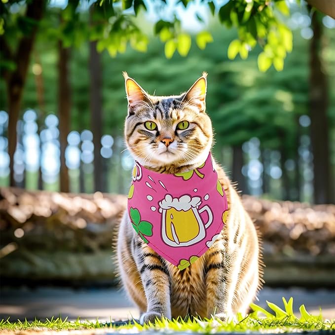- Design elements:These dog bandanas are printed green hat,clover leaves,beer,golden coins,horseshoe,ireland flag,gnomes,rabbit,colored eggs,I'M IRISH elements,which are suit for vibrant dogs,cats and other cute furry pets