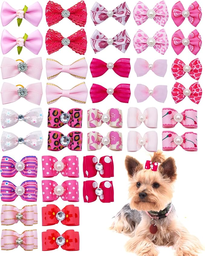 - Assorted Styles: Package includes 20pcs pink and rose dog grooming hair bows. Different batches, different designs. They are all very cute and will be assorted randomly. The pictures are just for reference. Thanks for your understand. They are the great gifts for your pets and friends. Hope you can enjoy them