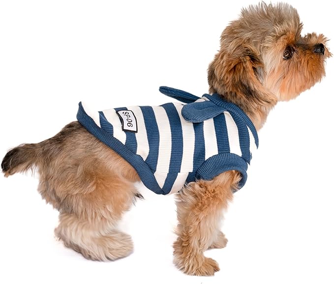 Soft Cotton Striped Shirt,Small Dog Christmas Bunny Costumes Rabbit Clothes for Easter Day Halloween for Small Dogs Teacup Dog Chihuahua Yorkie Boy or Girl-Blue and White Stripes M