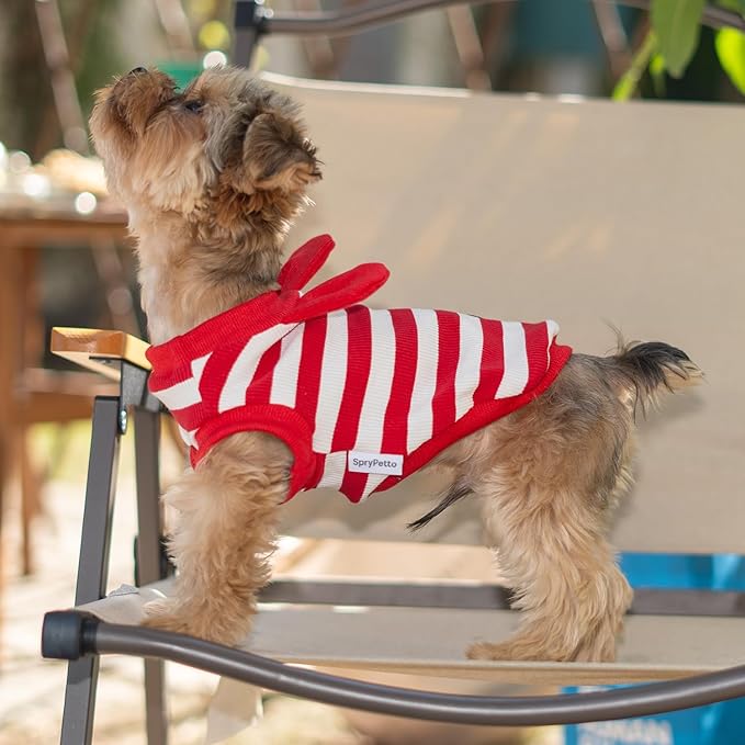 Soft Cotton Striped Shirt,Small Dog Christmas Bunny Costumes Rabbit Clothes for Easter Day Halloween for Small Dogs Teacup Dog Chihuahua Yorkie Boy or Girl-Red and White Stripes S
