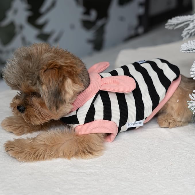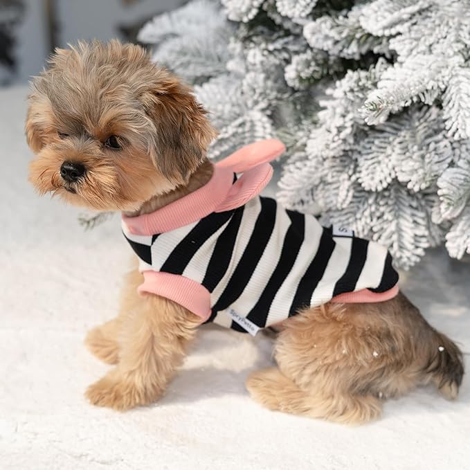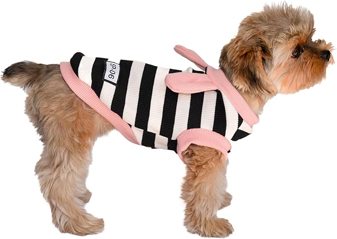 Soft Cotton Striped Shirt,Small Dog Christmas Bunny Costumes Rabbit Clothes for Easter Day Halloween for Small Dogs Teacup Dog Chihuahua Yorkie Boy or Girl-Black and White Stripes XXS