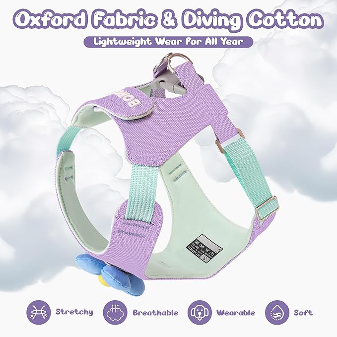 - EASY TO USE & STEP IN --- This flower harness is easy to put on and take off with magic strap closure, just open the dog harness, let your dog's front legs through the step-in harness, then reclose the closure and lock the buckle, adjust the straps, finished!