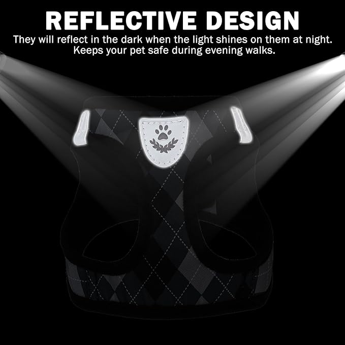 - REFLECTIVE DESIGN & CLASSIC CHECKERED PATTERN: With reflective tape on both sides of the puppy harness and a reflective logo in the centre, you'll be safer when taking your dog for a walk at night! In addition, the diagonal plaid pattern looks both classic and stylish and will never go out of style