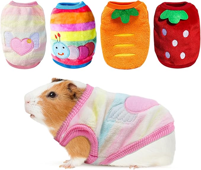 - Each guinea pig and rabbit clothes is designed with an adorable pattern, such as: pink magic love heart*1, rainbow caterpillar polka dots*1, red strawberries*1, orange carrots*1, which all look chic and generous, playful and cute