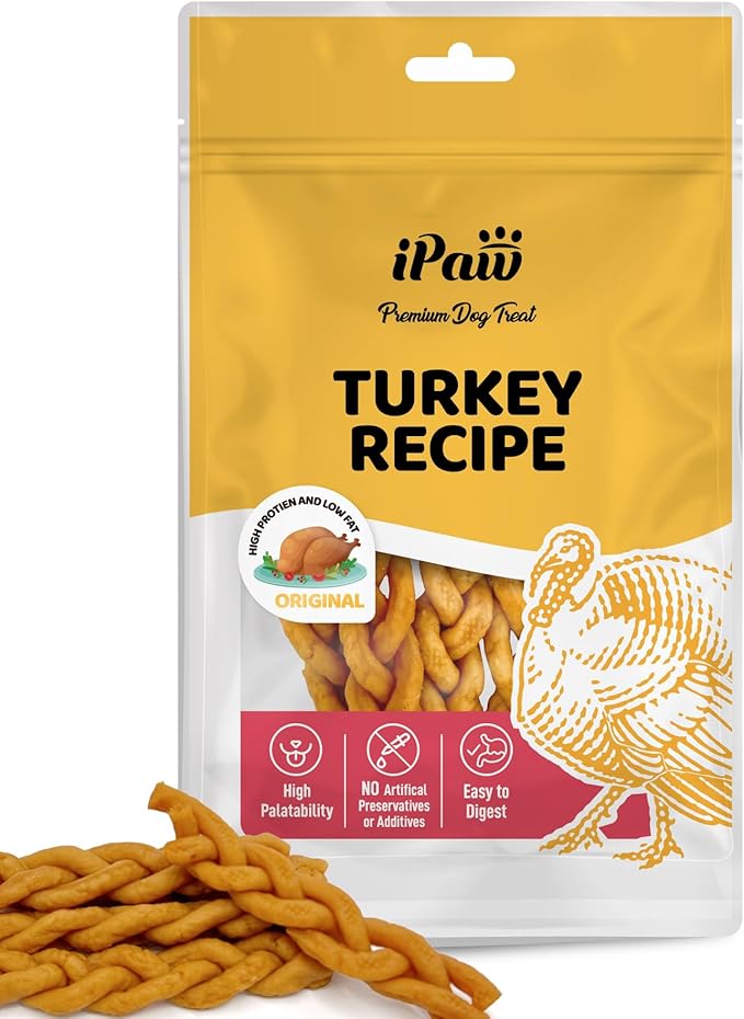 Turkey Dog Treats, All Natural Human Grade Dog Treat, Suitable for Training chew, US Sourced Raw Material, Hypoallergenic, Rawhide Alternative, Braided Stick
