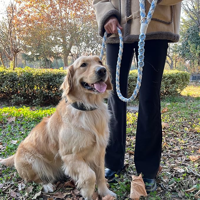 - DURABLE & HANDWOVEN STRENGTH: Made from six tightly braided cotton ropes, this 0.71-inch diameter leash is built for durability and wear resistance. Perfect for all-weather use, it minimizes pulling strain for a more comfortable walking experience.