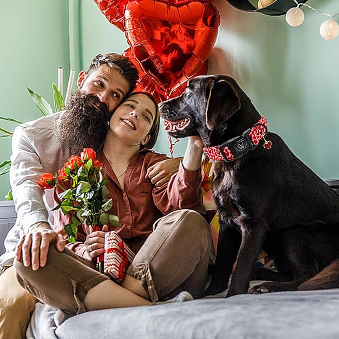 Elegant little tail Valentine's Dog Collar, Red Heart Dog Collars Female or Male Adjustable Cotton Pet Collar with Quick Release Buckle for Small Medium Large Dogs