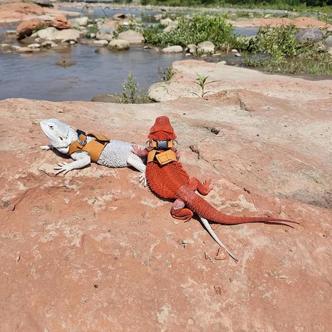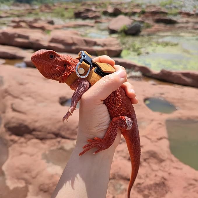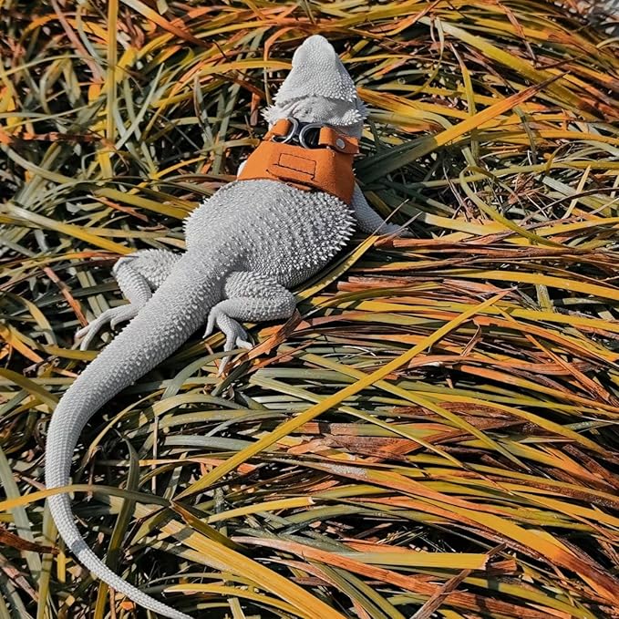 - High Quality Material: Bearded Dragon Harnesses are made of soft leather with delicate craftsmanship, no feeling of restraint.Designed to reducing tugging and pulling on your pet's neck and keep your pet safe and comfortable.Provide a full protection in chest and neck when walking your pet, prevent injuries and ensure safety of pet