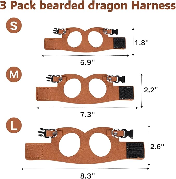 - 3 Sizes Pack: Package includes 3 different sizes leather harness (small, medium and Large),great for all size bearded dragons from young to adult.Fits small animals in different sizes and growing stages.If you are a pet lover who lives with various kinds of pets, this set is undoubtedly for you.You don't need to spend much time on finding suitable size for each pet in your house anymore