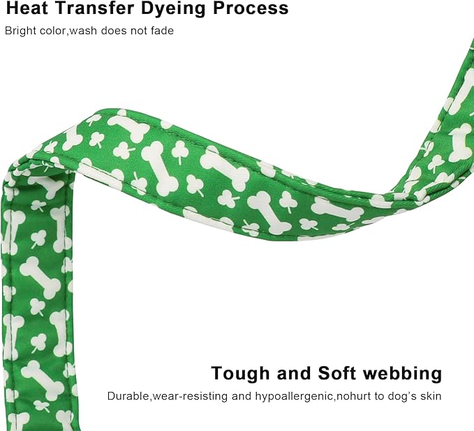 Lionet Paws St. Patrick Dog Collar- Cute Clover Bone Green Dog Collars with Plastic Buckle, Light Adjustable Dog Collars with Clover Pendant for Medium Dogs