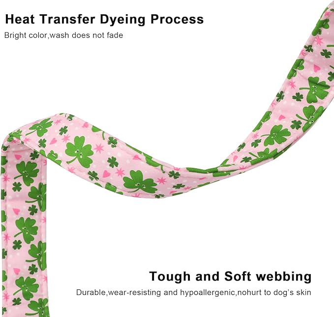 Lionet Paws St. Patrick Dog Collar- Cute Clover Pink Dog Collars with Plastic Buckle, Light Adjustable Dog Collars with Clover Pendant for Medium Large Dogs