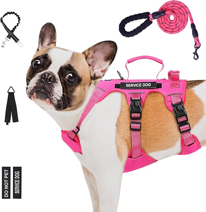 - 【 High-Quality Dog Harness and Leash Set】One-stop shopping for all the items needed for dog travel, including 1 * dog harnesses, 1*dog leash, 1 * dog car seat belt, 2 * "SERVICE DOG" Removable Patches, 2 * "DO NOT PET" Removable Patches and 1 * storage tape, which can save you time and money.