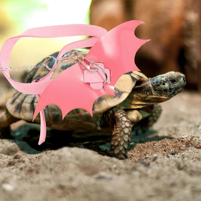 Turtle Harness and Leash with Wings- Harness Strap Chest Collar Adjustable Rope Walking for Turtle Reptile(Pink S