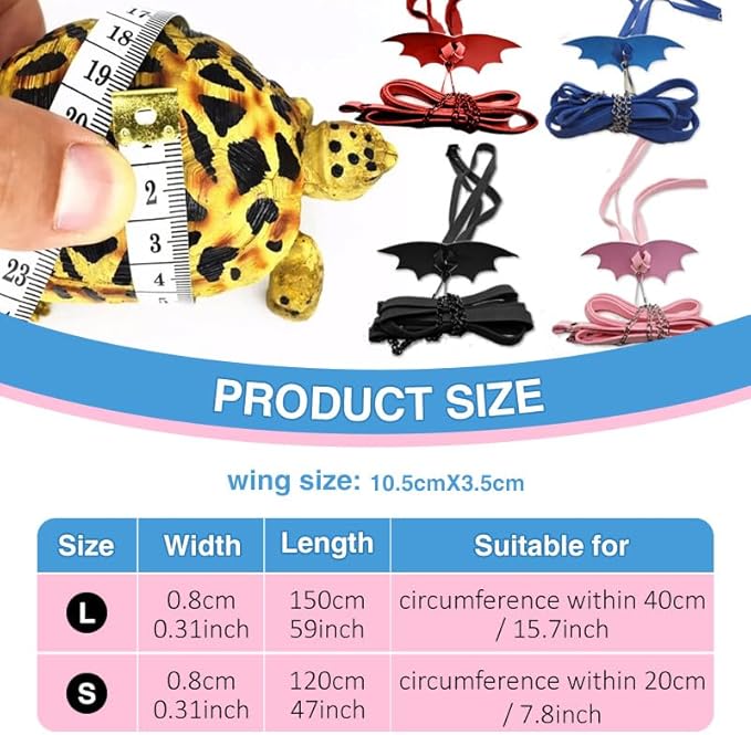- Unique Wing Design for Style - This turtle harness stands out from ordinary harnesses with an added wing design, making your beloved pet look unique and eye-catching. It's a perfect choice for both functional use and decorative style for your turtle or tortoise.