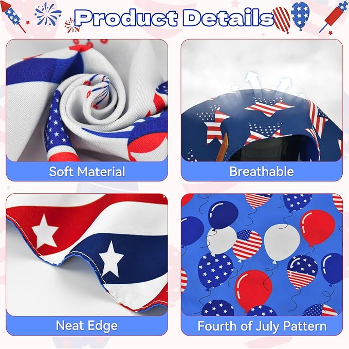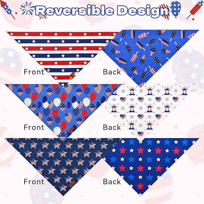- 【Soft Material】The independence day pet bandanas are made of soft, breathable and lightweight polyester-cotton, no pilling, no fading, and comfy to wear. With double layer fabric, they are more durable to use. With different prints on both sides, Each bandana has two different wearing styles. You can wash them by hand or by machine.