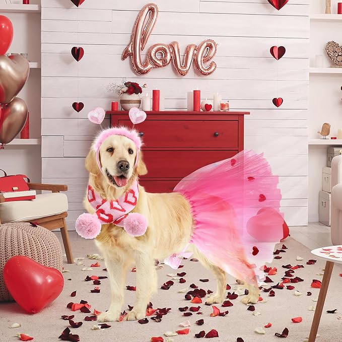 - Nice for Gifting in Valentine's Day: the combination of dog headband Valentine's Day, Valentine's Day scarf and dog tutu skirt meets the dressing needs of Valentine's Day; You don't need to buy other things separately, thus reducing the pressure of shopping choices, are an ideal gift choice for dogs families or pets families