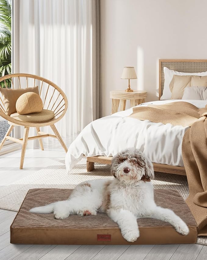 OhGeni Orthopedic Waterproof & Machine Washable Dog Bed for Medium Large Pets, Suitable for Crates, 25D Egg Crate Foam, Non-Slip Bottom & Removable Cover, Invisible Zipper, 35 Inches(Coffee)
