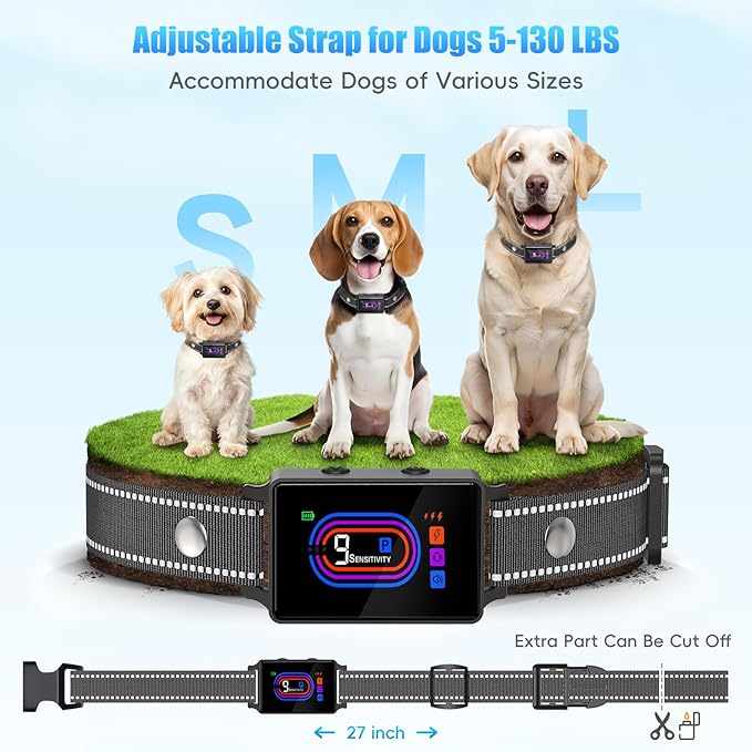 - 7 Training Modes & 10 Sensitivity Levels:Customize your dog’s training experience with 7 adjustable modes: Shock, beep, vibrate, or a combination of both, with or without . Choose from 10 sensitivity levels to match your dog’s specific needs for effective barking control.