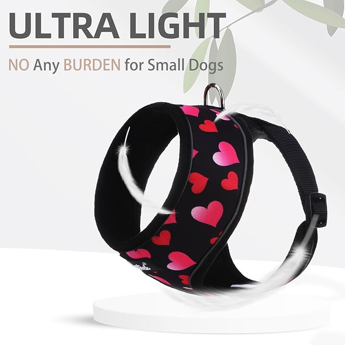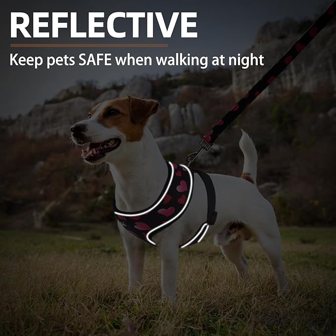 PUPTECK Soft Mesh Dog Harness and Leash Set Pet Puppy Cat Comfort Padded Vest No Pull Harnesses Valentine, Black&Pink, M