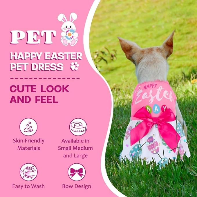 - Eye-Catching Design: Cute easter girl style, printed with many elements like easter eggs, rabbit and classic easter colors, etc. This dog easter dress is also decorated with cute pink bow tie to enhance the cuteness of your pet. Perfect for the upcoming Easter, cosplay parties, Easter girl costumes, Christmas and more