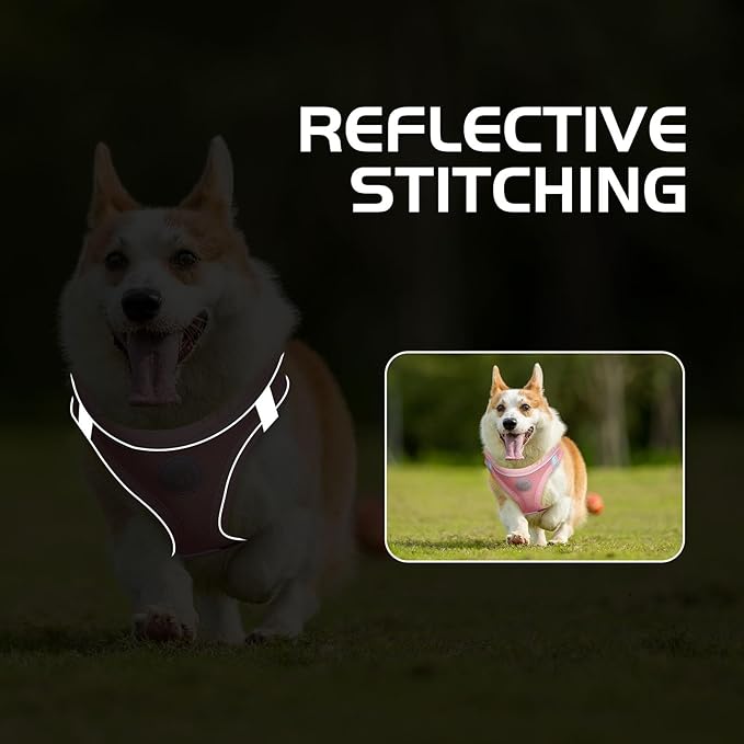 - 【Breathable and Comfortable】- Made from high-density, soft, and breathable Air-mesh fabric. The lightweight and durable material is easy to clean and quick-drying, making it suitable for all seasons. Your dog will enjoy a comfortable walking experience in this stylish and functional dog harness