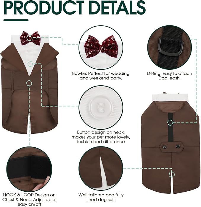 - Two Piece Set: Formal Dog Tuxedo and Dog Wedding Bandana Set, can be used seprately. Bandana for comfortable wear featuring neck or bow tie along with decorative buttons to show off your best friend's personality