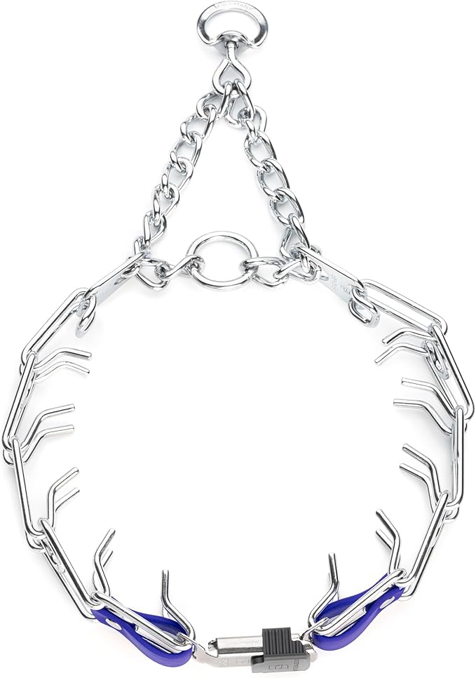 - Herm Sprenger Chrome Plated Steel Prong Collar: This training prong dog collar features a Herm Sprenger Click Lock Buckle, Swivel D-Ring and U.S. made Biothane insert; The Biothane insert enhances the stability and security of the buckle connection with the prongs, while adding a personalized touch with a choice of different colors