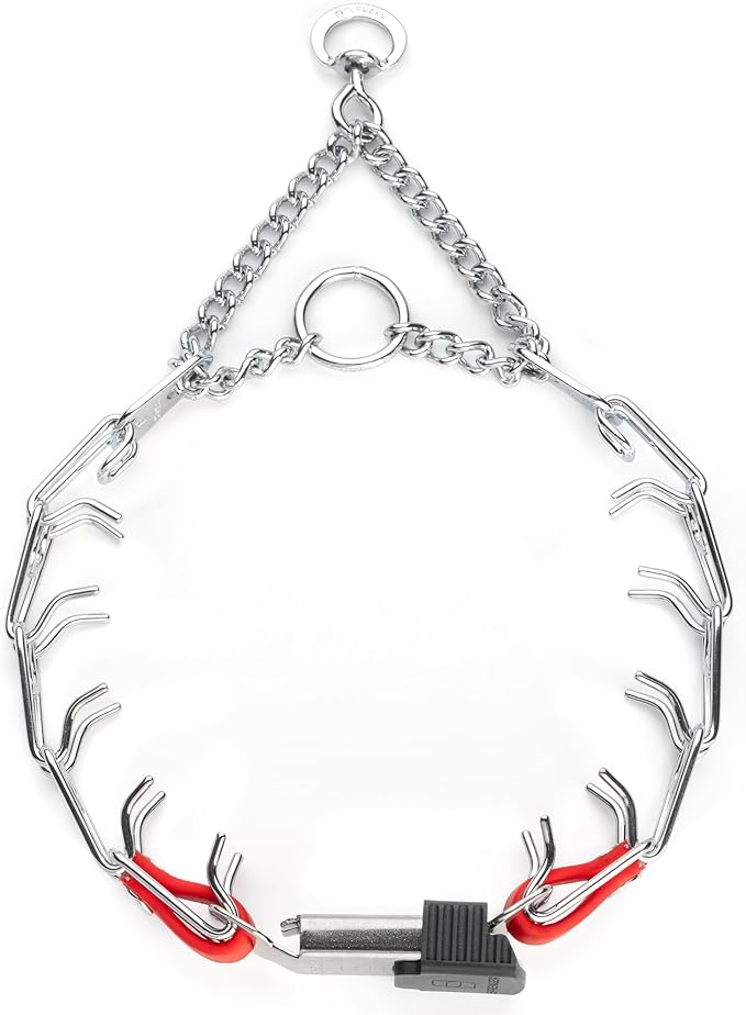 - Herm Sprenger Chrome Plated Steel Prong Collar: This training prong dog collar features a Herm Sprenger Click Lock Buckle, Swivel D-Ring and U.S. made Biothane insert; The Biothane insert enhances the stability and security of the buckle connection with the prongs, while adding a personalized touch with a choice of different colors