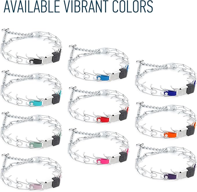 - Herm Sprenger Chrome Plated Steel Prong Collar: This training prong dog collar features a Herm Sprenger Click Lock Buckle, Swivel D-Ring and U.S. made Biothane insert; The Biothane insert enhances the stability and security of the buckle connection with the prongs, while adding a personalized touch with a choice of different colors