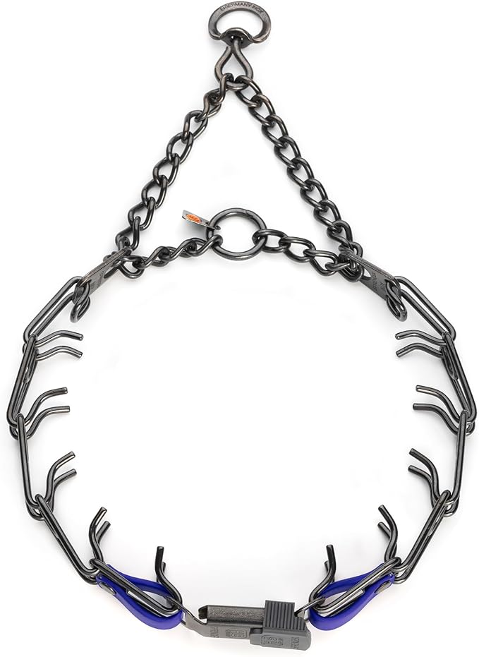 - Herm Sprenger Black Stainless Steel Prong Collar: This training prong dog collar features a Herm Sprenger Click Lock Buckle, Swivel D-Ring and U.S. made Biothane insert; The Biothane insert enhances the stability and security of the buckle connection with the prongs, while adding a personalized touch with a choice of different colors