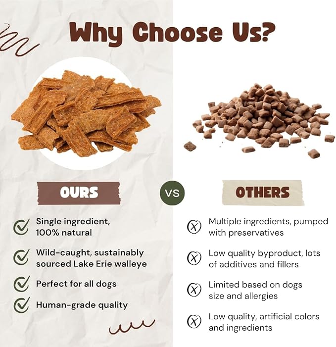 Single Ingredient Dog Treats | Natural Dehydrated Walleye Fish Snacks | Grain-Free High-Protein, Human Grade, No Additive | For Healthy Skin Coat & Dental Care | Dog Training Treats (1LB/16oz Bag)