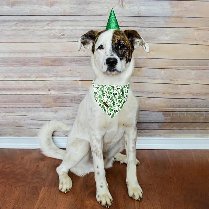 Unique Style Paws Dog St. Pat Bandanas 2Pcs Washable Cotton Triangle Green Clover Magic Hat Dog Scarfs for Small Medium Large Dogs and Cats