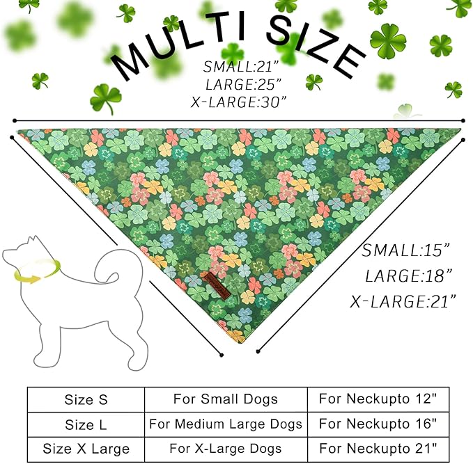 - ♥ Dog Bandanas Size ♥ : Small=21"(54cm)X15"(39cm)X15"(39cm), Large=25"(65cm)X18"(46cm)X18"(46cm), X-Large=30"(76.2cm)X21"(55cm)X21"(55cm).Please measure your pet's neck and leave room to tie knot.(Small size fits up to a 12" neck, Large size fits up to a 16" neck, X-Large size fits up to a 21" neck).