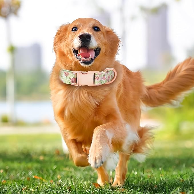 - 100% Cotton Material Bring You Great Package: Our dog collar and leash is made from breathable cotton fabrics to suit your pet's needs. Soft touch, skin-friendly and easy to clean. This cute dog collar set includes a floral dog collar, a bowtie, matching 5 ft leash and gorgeous flower. Every piece is carefully-crafted and has been triple-stitched at all stress point for added strength to ensure your puppy safety