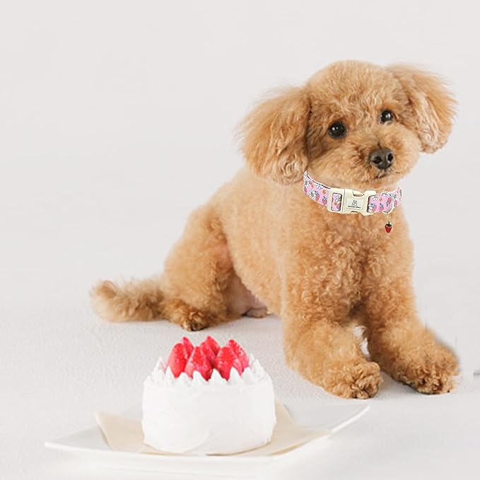 Lionheart glory Dog Collar Strawberries Print Pink Dog Collars Girl Spring Summer Cute Collar Pet Gift Durable Adjustable Dog Collar for Medium Dogs