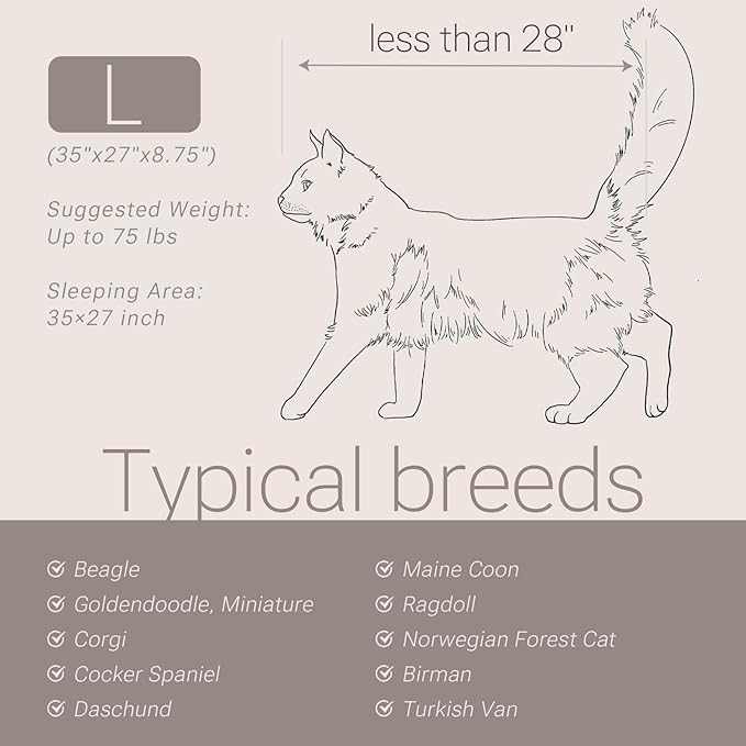 - Designed for Pets: Rectangle shaped mattress is perfect for pets to stretch out when its sleep. The dog bed also can be placed on living room, any elevated dog bed & dog bed trampoline or in a crate & pet house. 35 x 25 x 8.75 inches, Suitable for dogs weighing less than 75 pounds, including medium and large breeds.