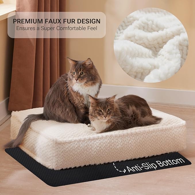 - Warm and Comfortable Bed Surface: The dog bed is designed with a luxury plush faux fur top and a slip-resistant bottom, with a skin-friendly sleeping surface, providing extra coziness for dogs to sleep comfortably.