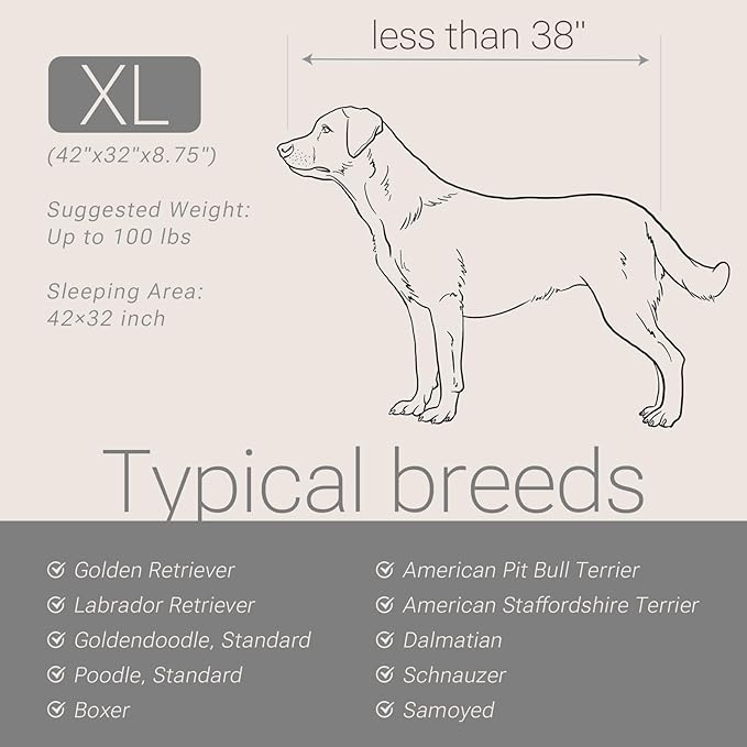 - Designed for Pets: Rectangle shaped mattress is perfect for pets to stretch out when its sleep. The dog bed also can be placed on living room, any elevated dog bed & dog bed trampoline or in a crate & pet house. 42 x 30 x 8.75 inches, Suitable for dogs weighing less than 90 pounds, including medium and large breeds.