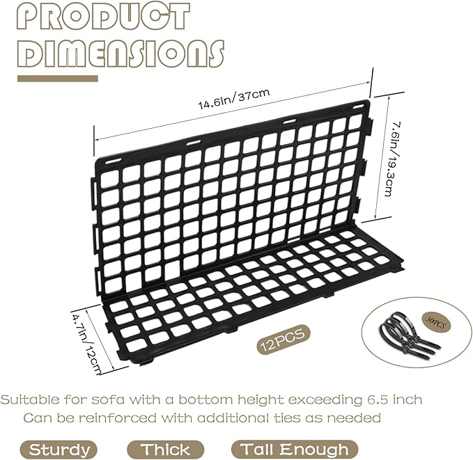 - Package Included: our package contains 12 pcs under couch blockers and 30 zip ties, which can be installed under the sofa or bed, and this quantity can meet the sealing around the sofa or bed, zip ties can bring double reinforcement