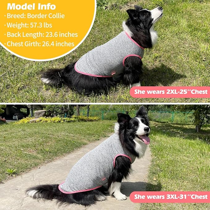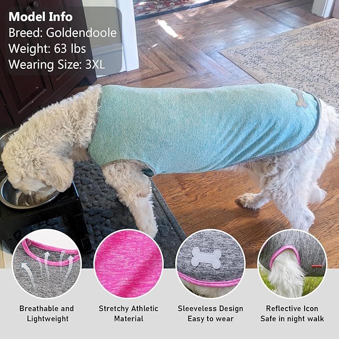 KYEESE 2 Pack Dog Shirts Quick Dry Soft Stretchy Dog T-Shirts with Reflective Label Tank Top Sun Protection Sleeveless Vest Pet Clothes for Small Medium Dogs, 3XL, Grey+Hotpink