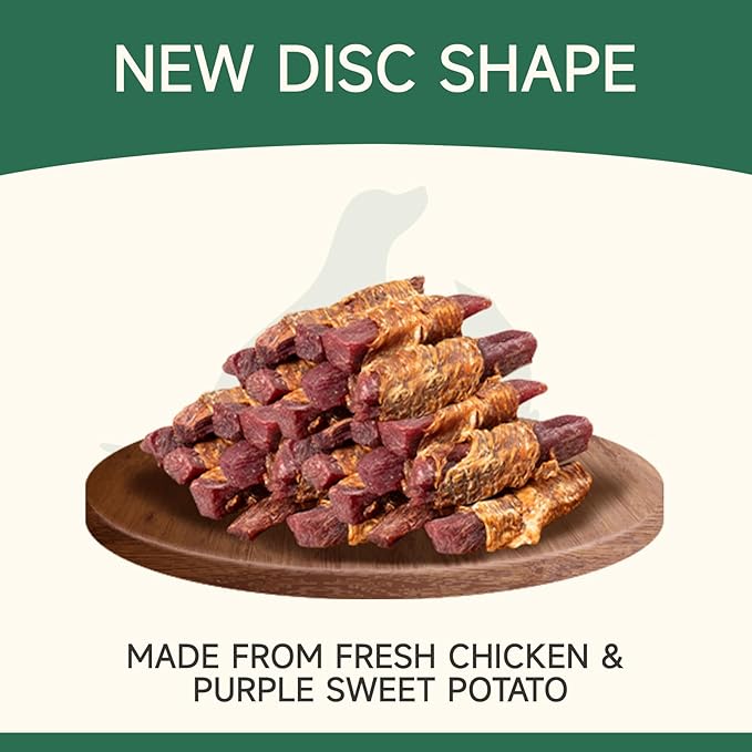 - NUTRITIONAL BENEFITS: Made of human-grade chicken meat for dogs as the very first ingredient which wrapped with purple sweet potato. Chicken jerky wrapped purple sweet potato dog treats are rich in essential vitamins, minerals and fiber, while chicken provides protein and other vital nutrients. They have hypoallergenic and low in fat, suitable for dogs that are allergic to food or sensitive to common proteins such as chicken or beef