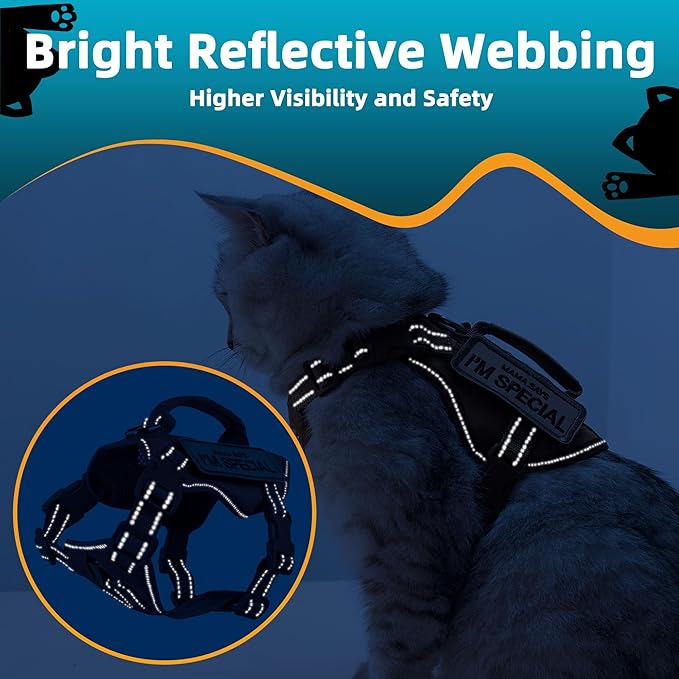 - MOLLE System on back two sides allow put morale patches or flags. Buy this cat kitten harness, get 2 embroidered patches (one is “emotional support ”,another one is” MAMA says I am special”).No questions, only love,