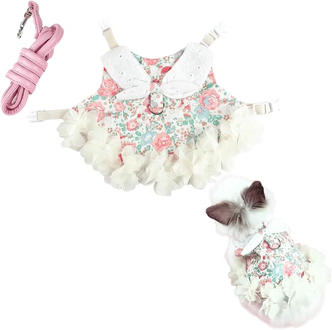- 【Exquisite Gift for Pet Lover & Convenient to Wash】The cute bunny Chanel’s style dress harness and leash are fashionable and eye-catching. It's a nice gift choice for people who love pets apparel, can be worn on Easter,Weddings, Holidays, Birthday Party,Daily Walking,Festival Dress. Your cute pet will be the focus of many pets. The small animal harness and leash suits can be washed by hand, non-deformation.