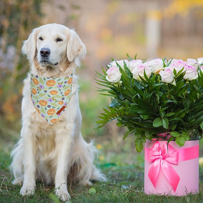 ADOGGYGO Floral Dog Bandana, Red Yellow Rose Pet Scarf, Adjustable Fit Flower Bandanas for Medium Large Dogs Pets (Large)