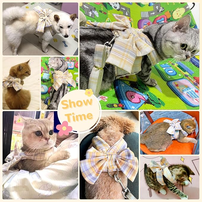 - Exquisite Girl Puppy Harness with Bow Tie: The cute no pull dog vest harness is specially designed for small female dogs and cats, cute eye-catching big bow decoration, fashion classic plaid design, is the best present for your furry baby. When your baby wears this yellow puppy harness to go out, it will definitely attract everyone's attention.